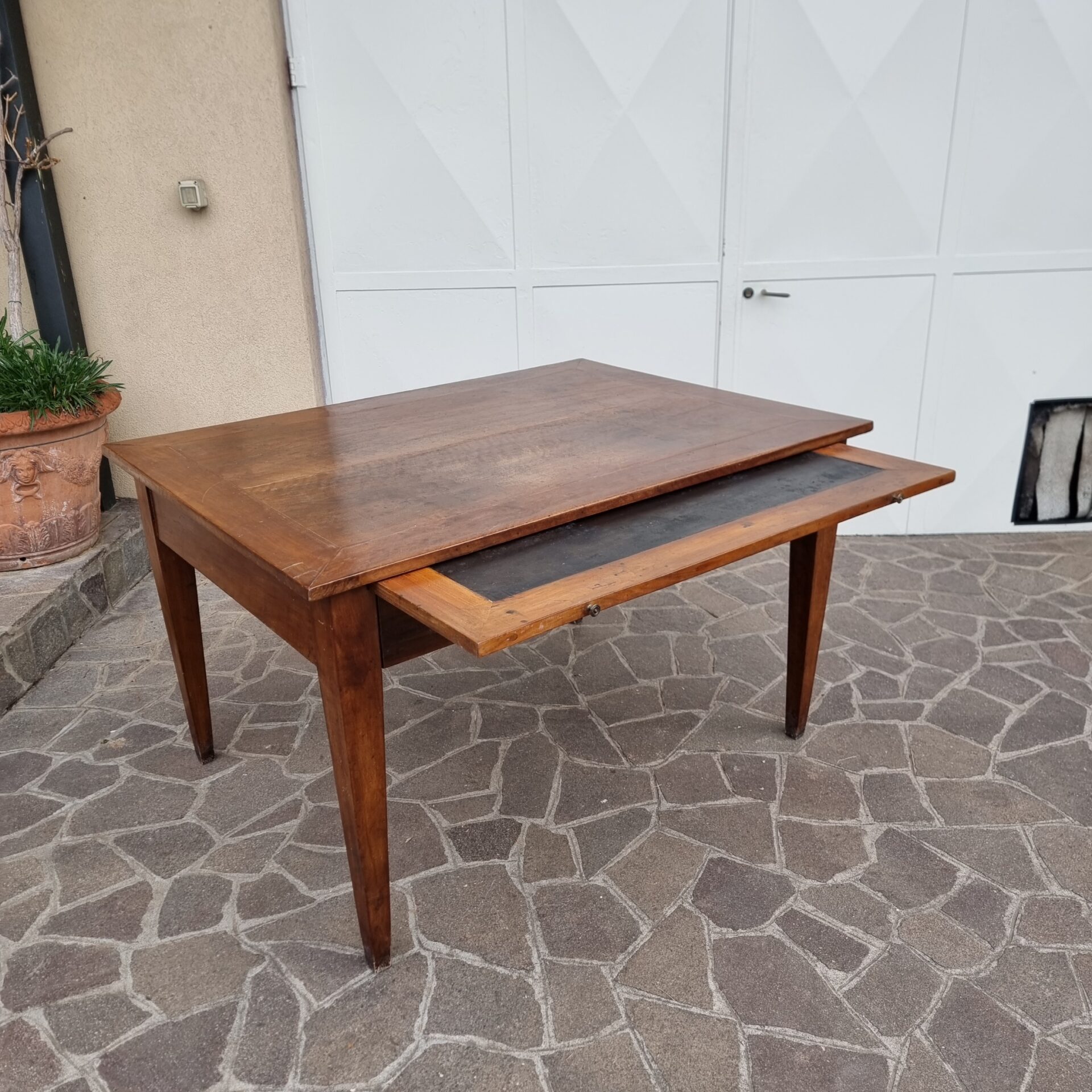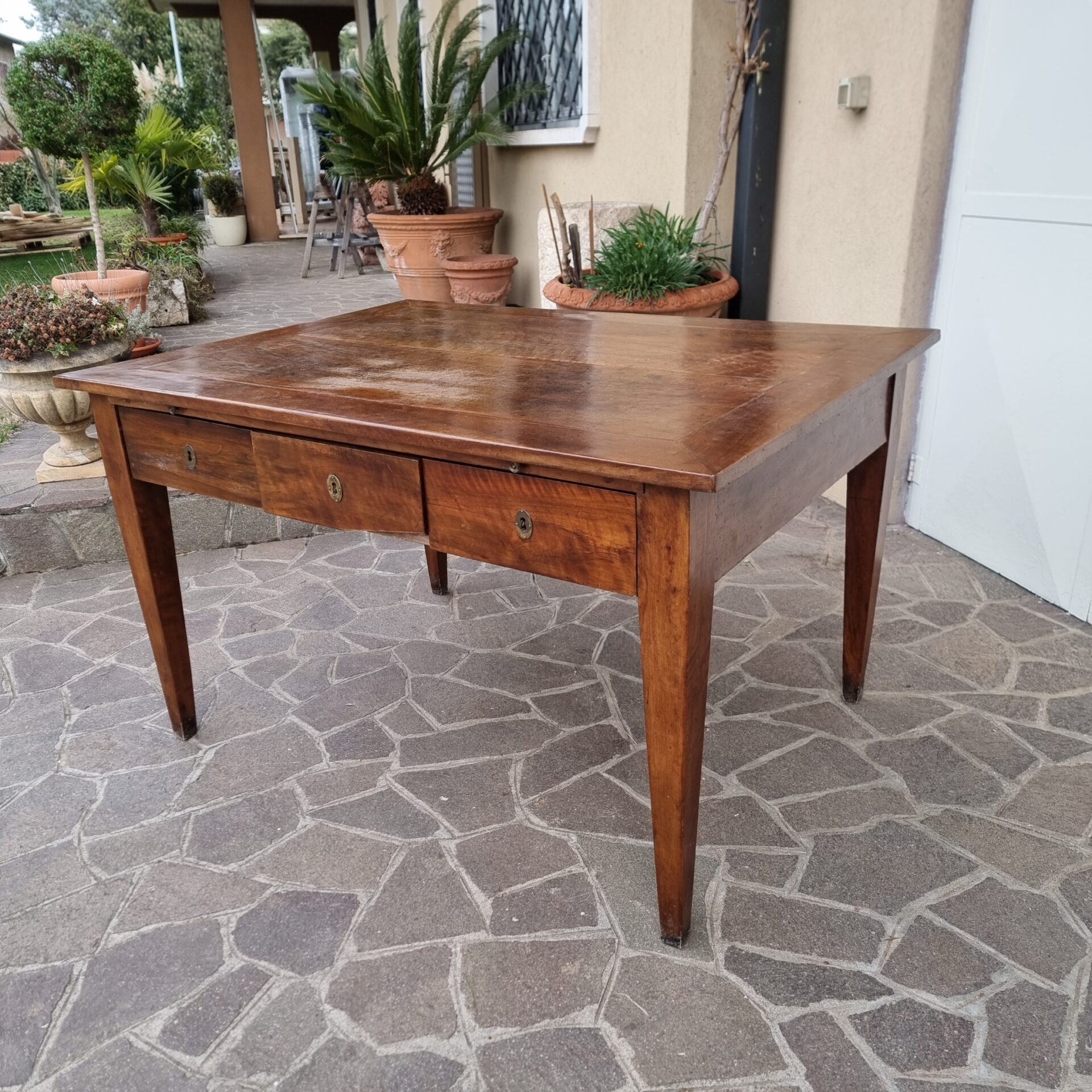 Immergiti nell’eleganza sobria e razionale di questo grande scrittoio Direttorio in noce, un autentico tavolo di fine Settecento che unisce la bellezza del legno a un design di intramontabile modernità. Un pezzo versatile, perfetto come scrivania, tavolo da centro o da pranzo.