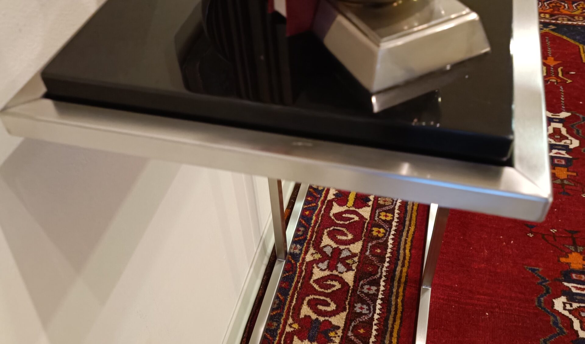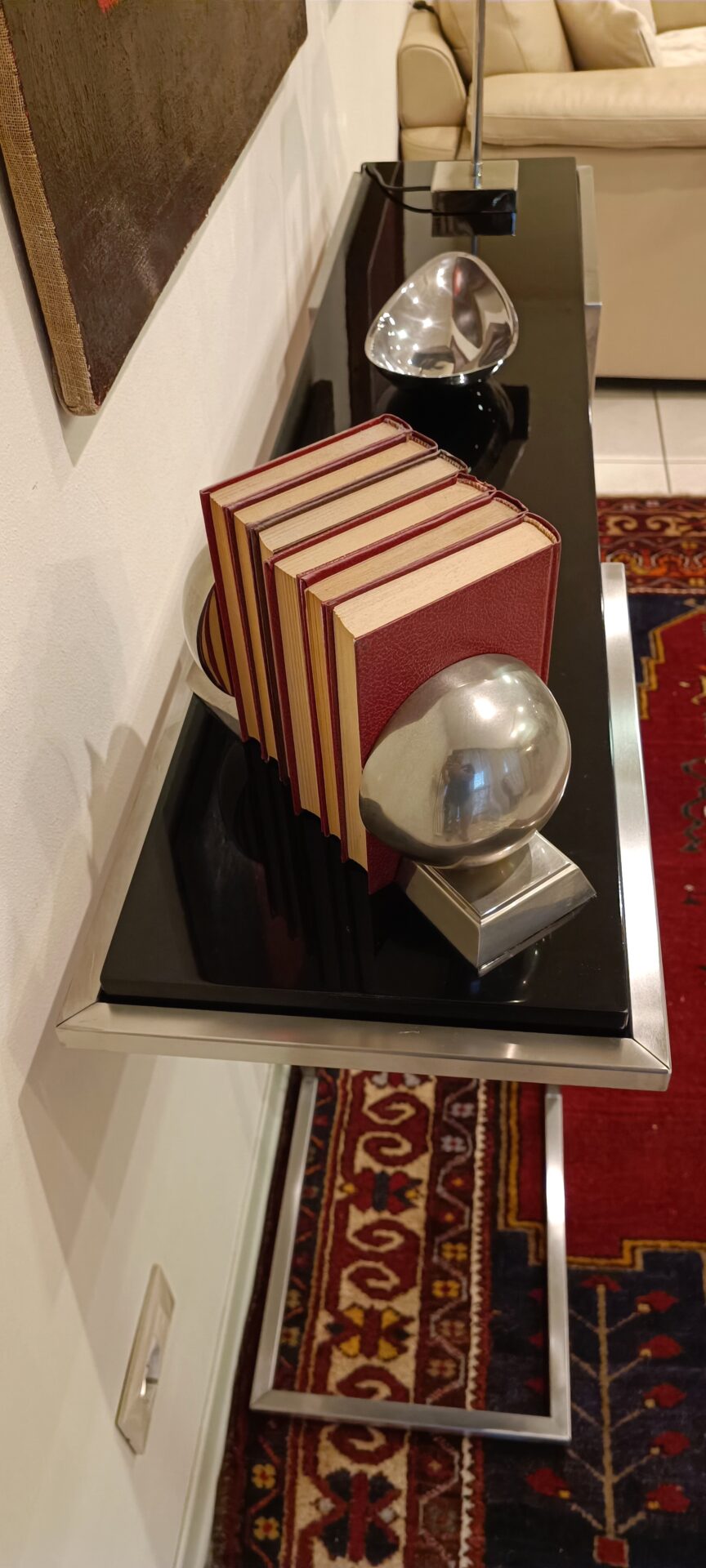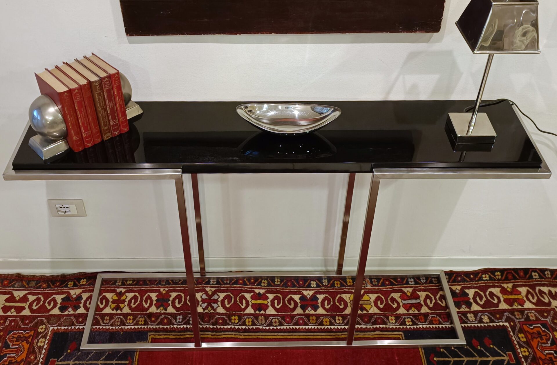 La Consolle Design Anni ’80 Acciaio Satinato con piano nero lucido
